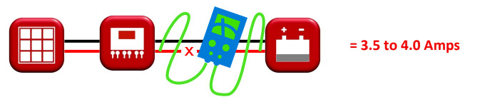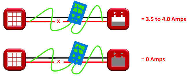 - S'il n'y avait pas de courant de fonctionnement lorsque le régulateur était installé (Test 3), mais qu'il y a maintenant un courant présent sans le régulateur, alors le régulateur de charge peut être défectueux. N'oubliez pas que si la batterie est pleine, elle peut ne pas accepter de courant, ce qui peut résulter en une lecture faible ou nulle.